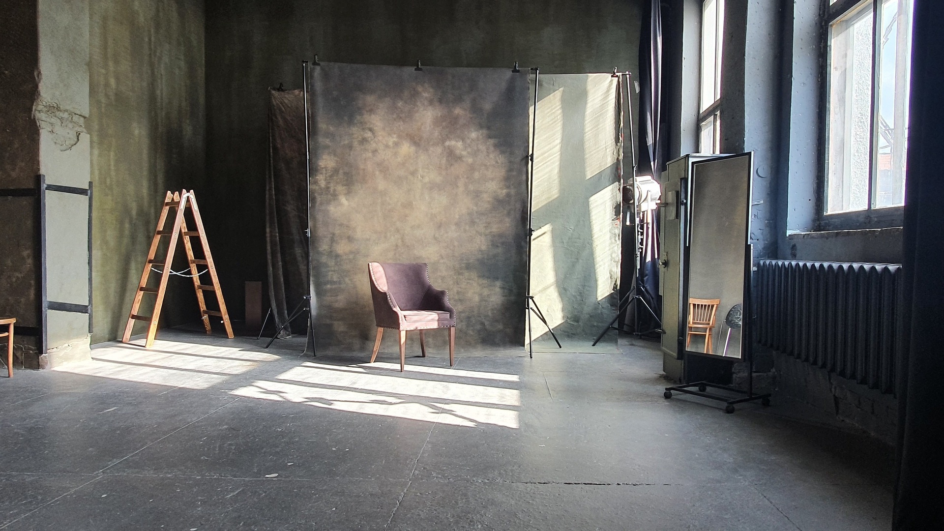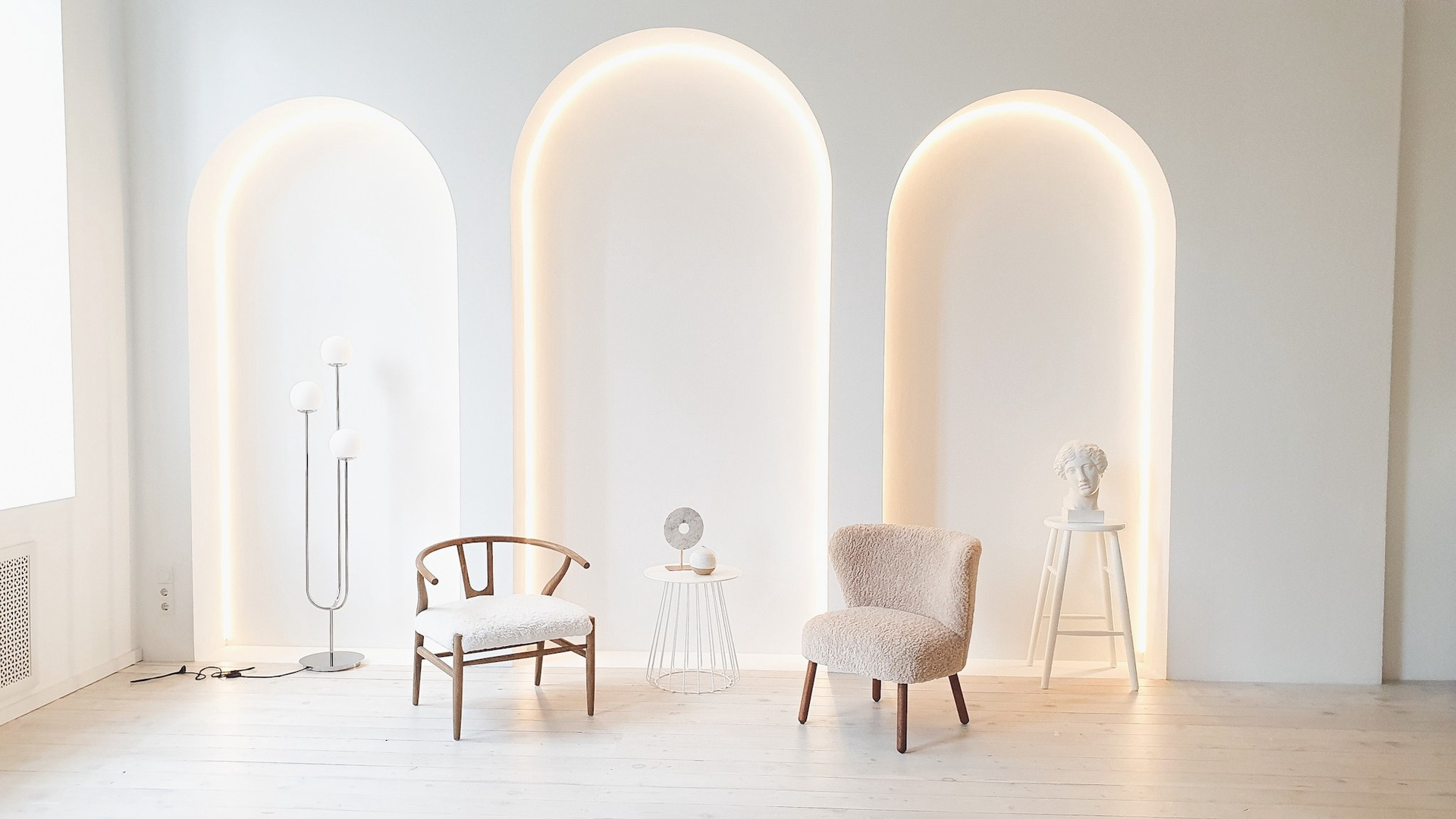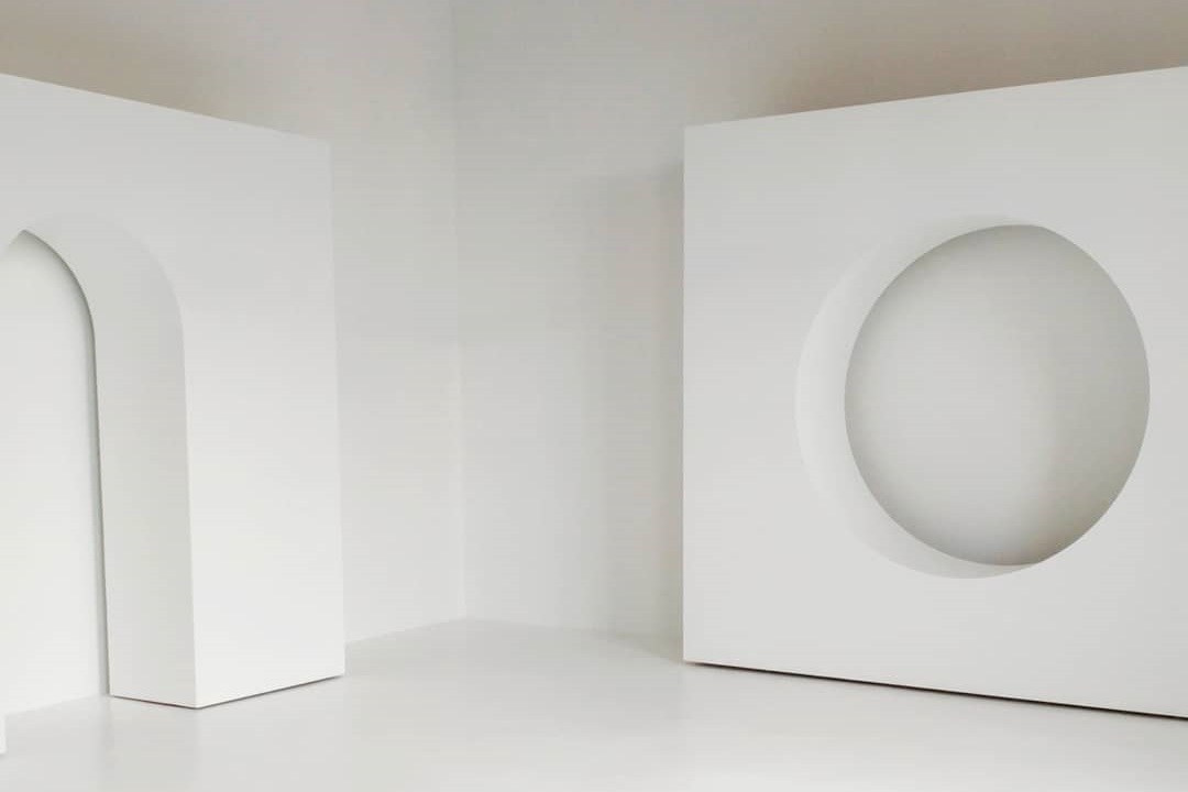 Третий зал — белоснежная циклорама с интересными геометрическими формами и фактурными стенами.