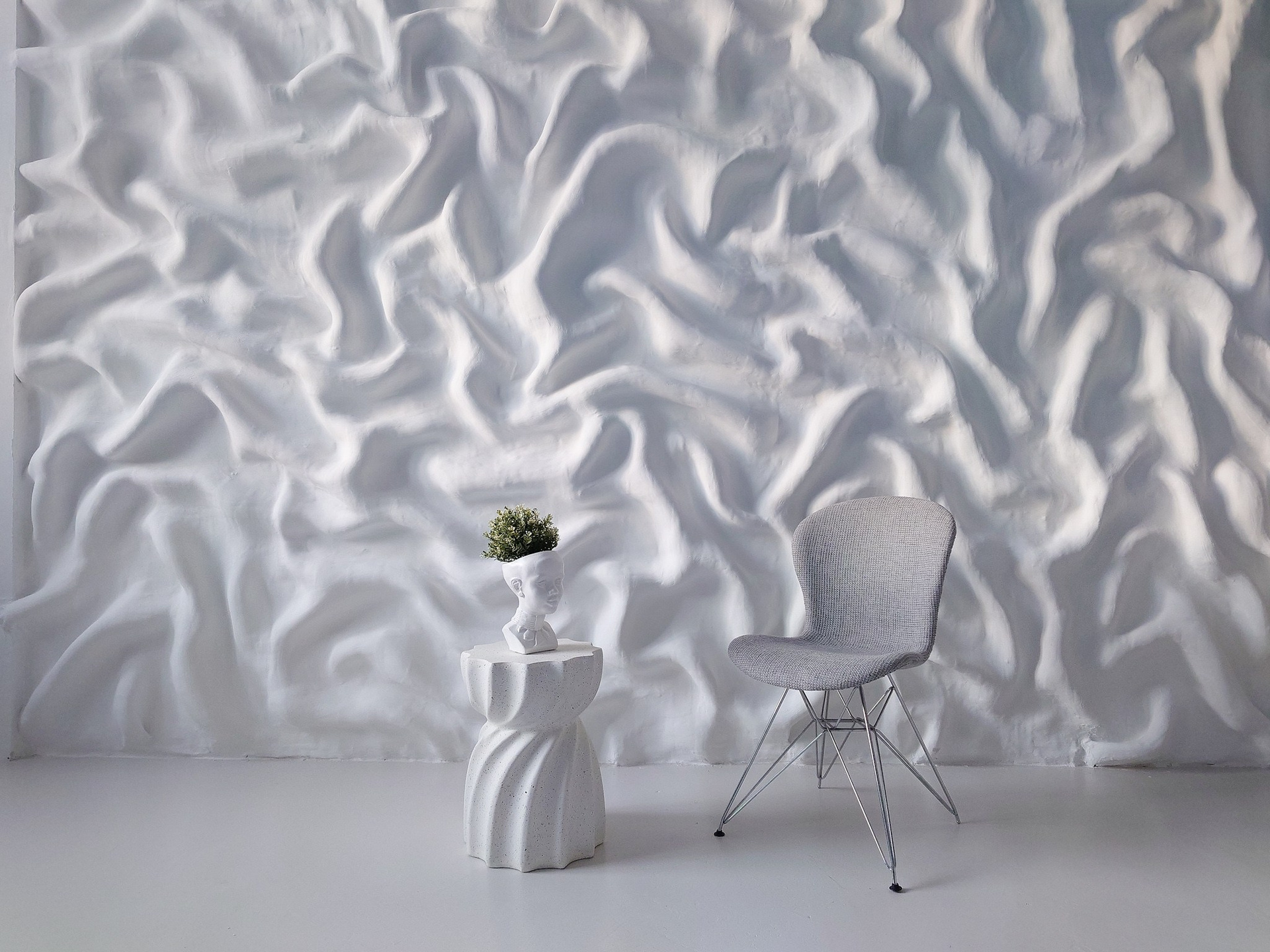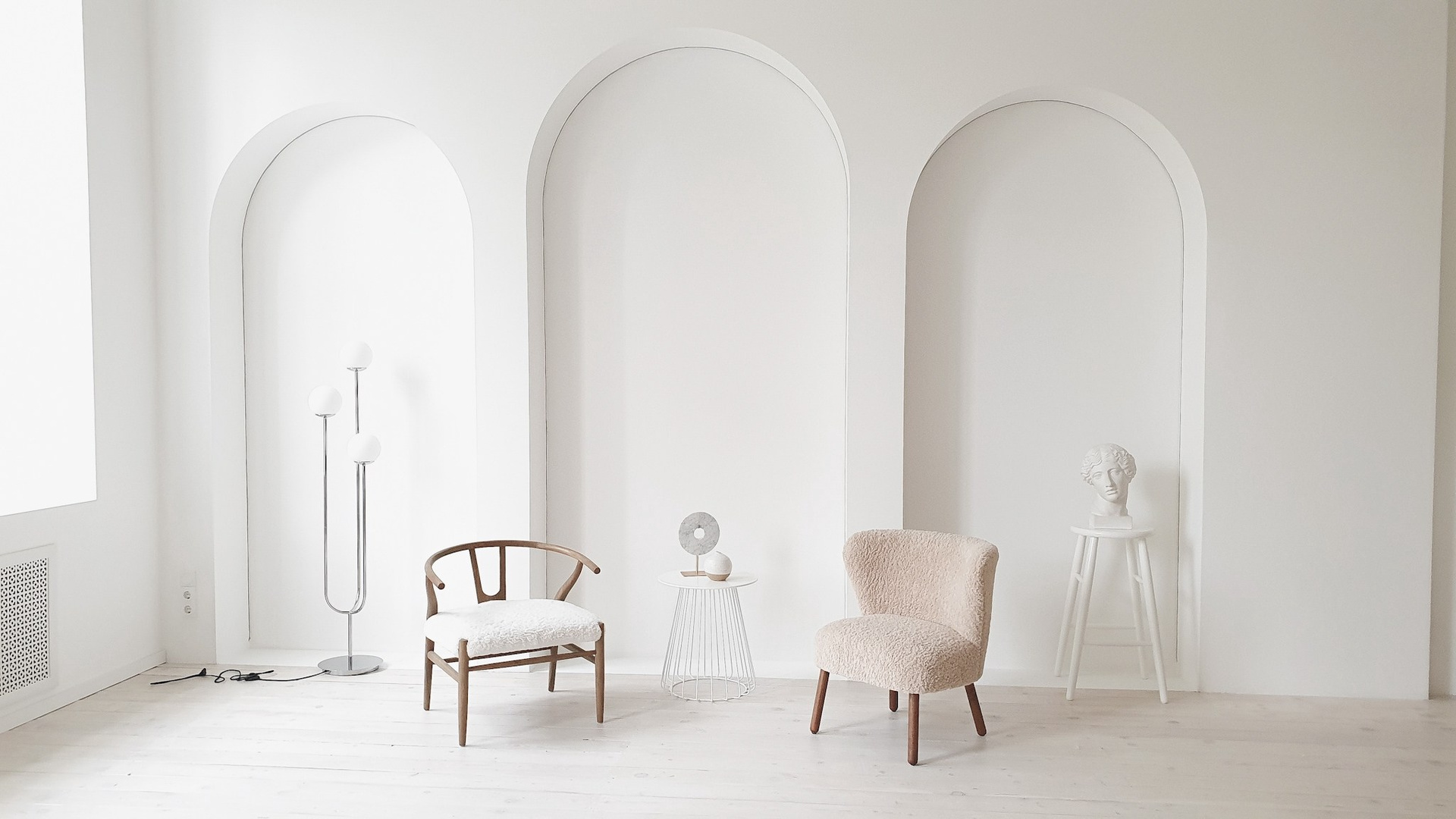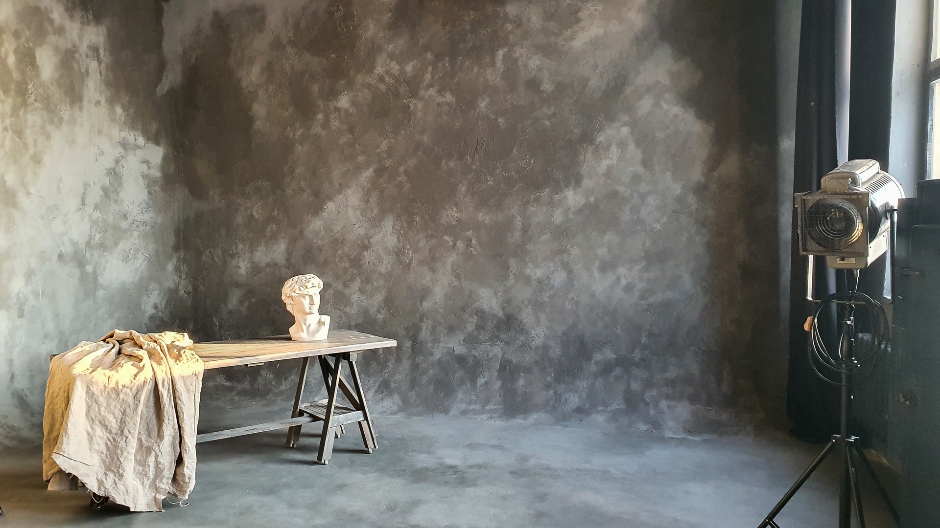 Третий зал — белоснежная циклорама с интересными геометрическими формами и фактурными стенами.