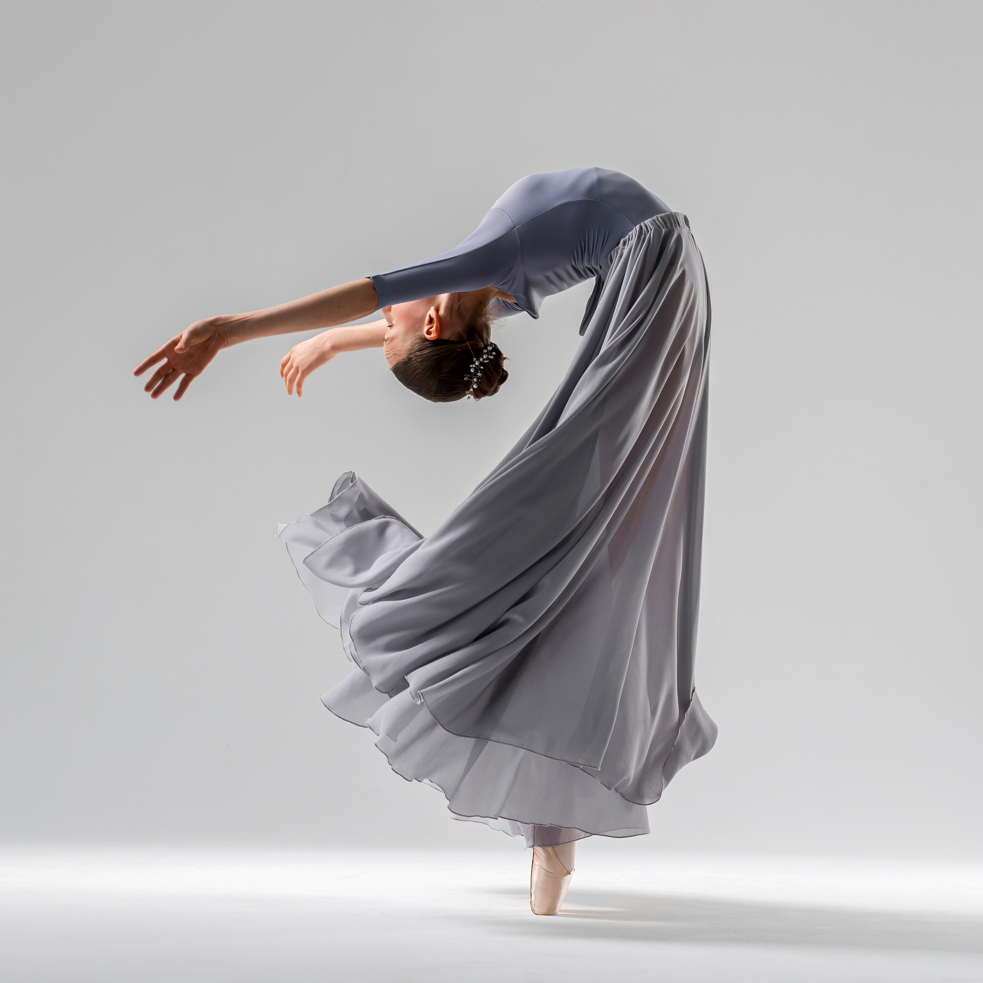 Серая воздушная длинная юбка. Юбка подходит как для детей, так и для взрослых. Юбка предоставляется напрокат бесплатно при заказе фотосъёмки. Балетный фотограф Алина Ханько. Душа Балета